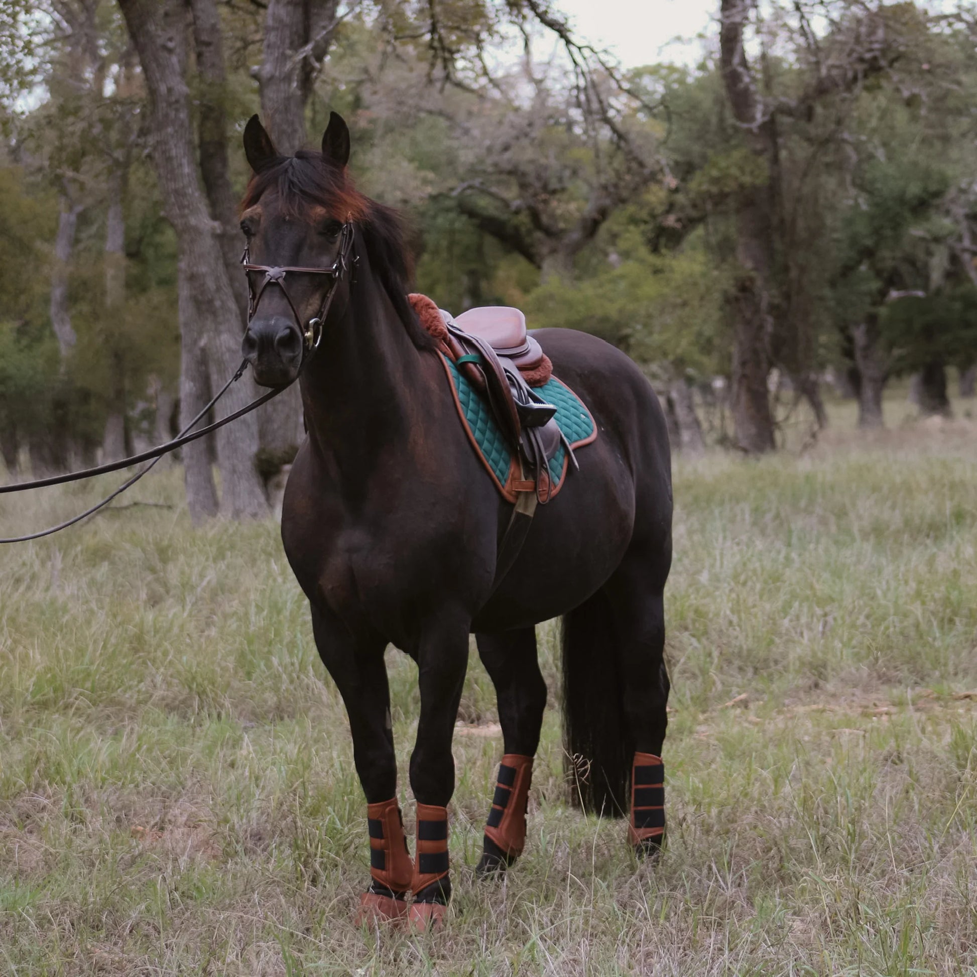 16C close contact contoured pad featuring contoured wither relief, moisture wicking lining and soft cotton quilting. Supported by durable leatherette trim finish to maintain structure over time & use, and anti-rug leg panel.