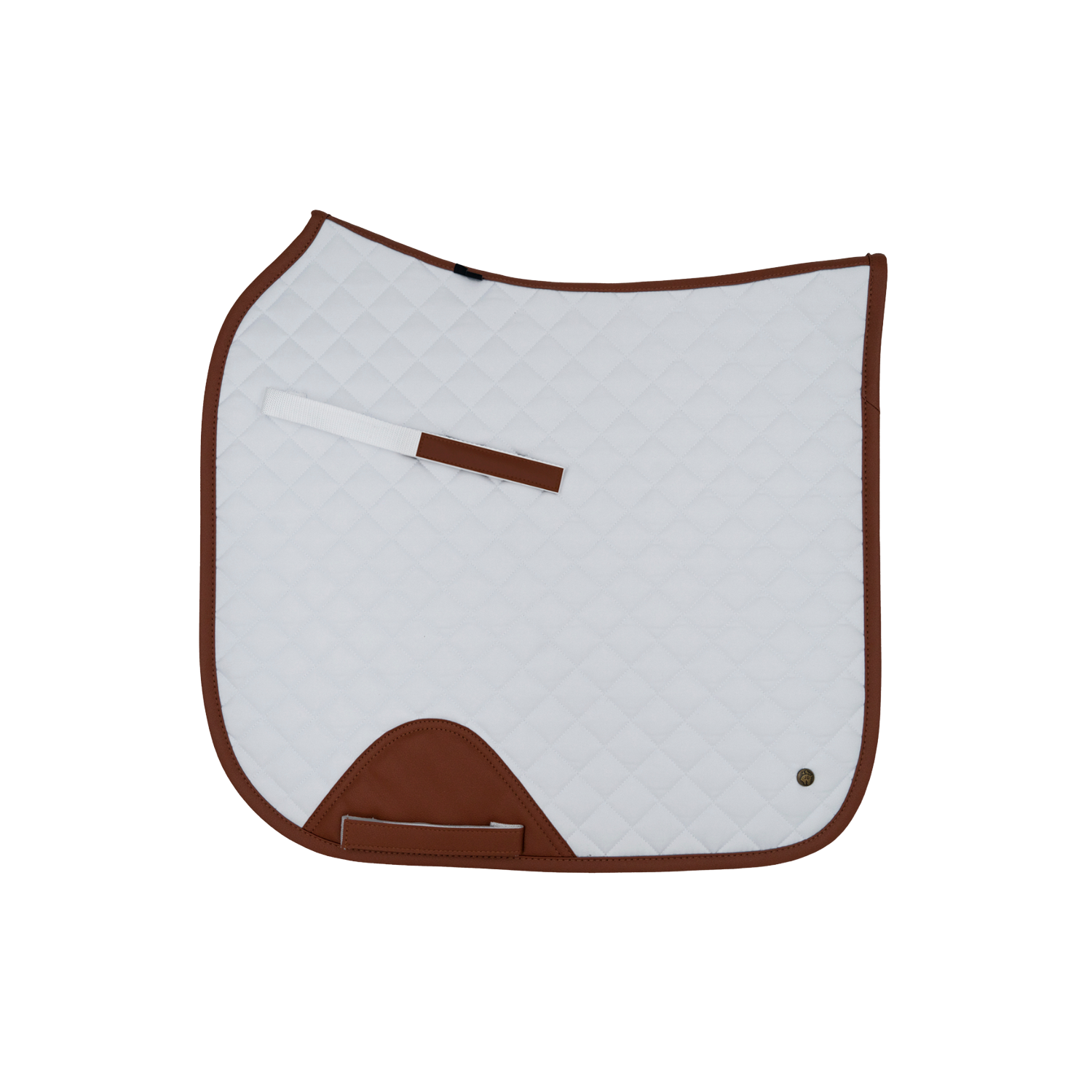 16C dressage pad in essential white with contrasting, cognac leatherette finish.
