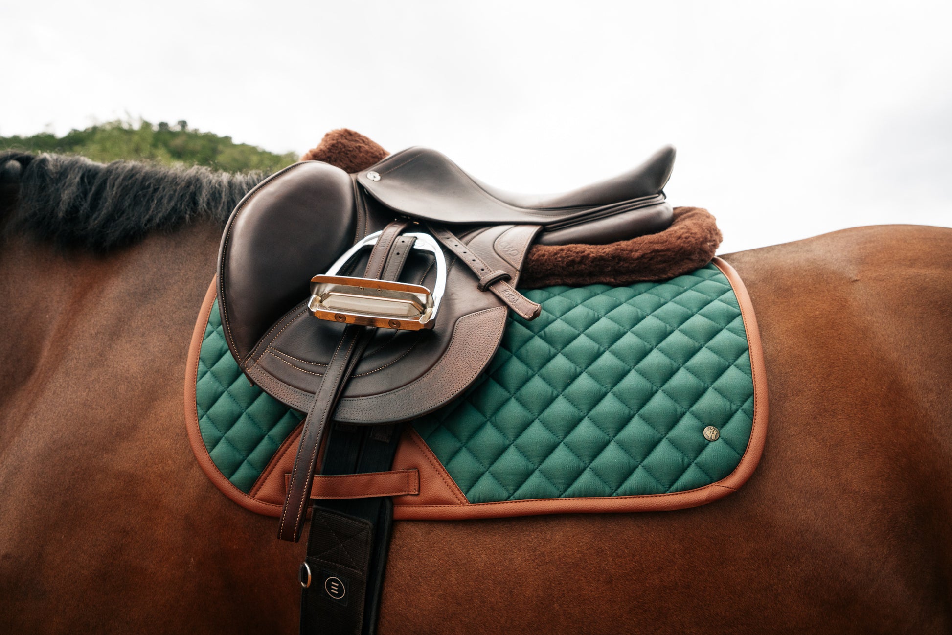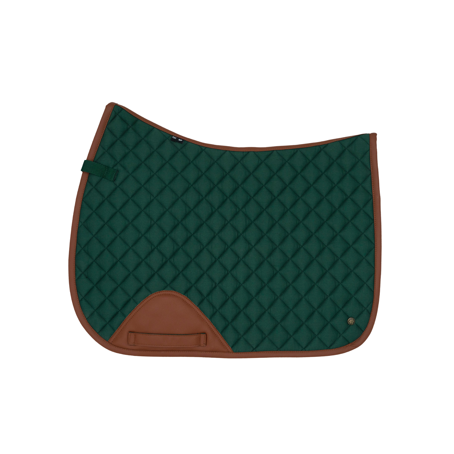 16C square jumper pad featuring contoured wither relief, sport mesh moisture wicking lining and soft cotton quilting. Supported by durable leatherette trim finish to maintain structure over time & use, and anti-rug leg panel. Machine washable, air dry.
