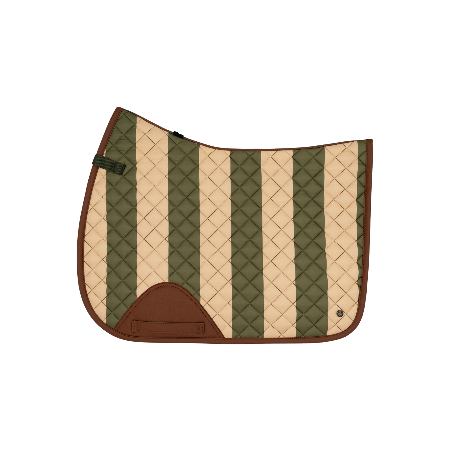 16C Jumper pad in Amalfi Coast inspired, Olive & Ivory Stripe, finished in Cognac leatherette.