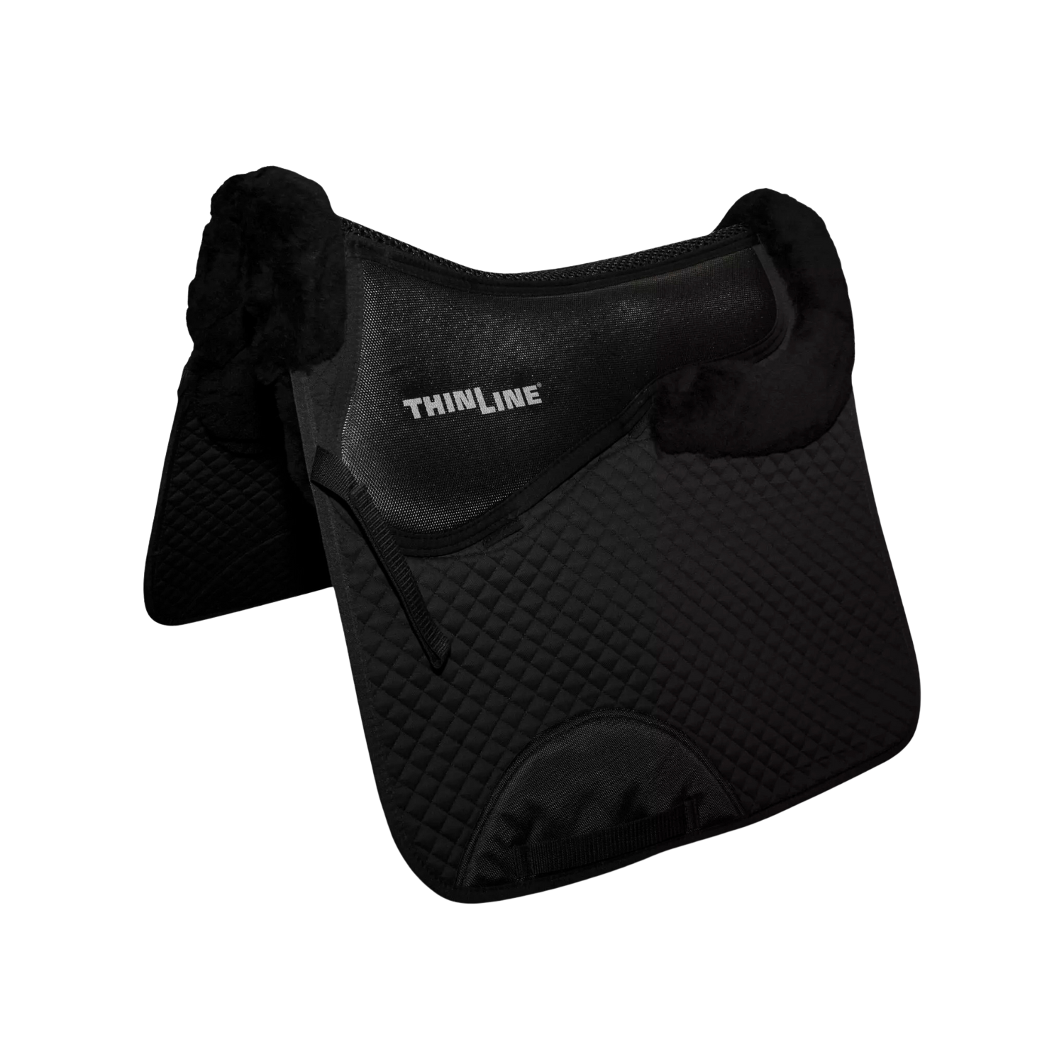 Meet the Euro Pad, your horse’s new best friend! Featuring ThinLine panels for top-notch shock absorption and a raised wither profile to keep pressure off those precious top lines. Its heavy-duty cotton base with light wool fill adds comfort, while durable billet straps keep everything secure. Pop in saddle fitting shims in the handy pocket under the ThinLine for a perfect fit. With plush Merino wool on synthetic hide, a spine channel that’s softer where it counts, plus a 3-D mesh spine band for breathability, your horse will be riding in luxury—and style!