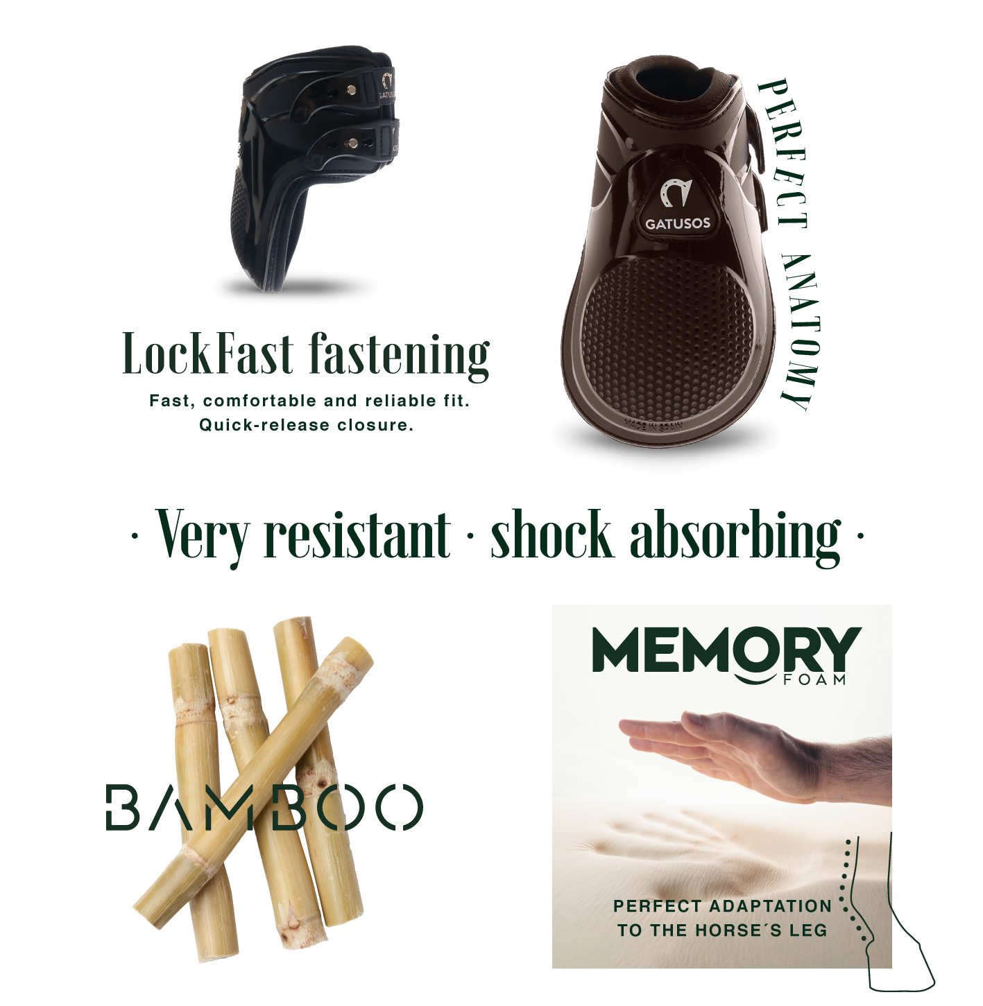 Gatusos® professional line protectors are made of BAMBOO, MEMORY FOAM and TPU SHELL, a perfect combination for your horse.